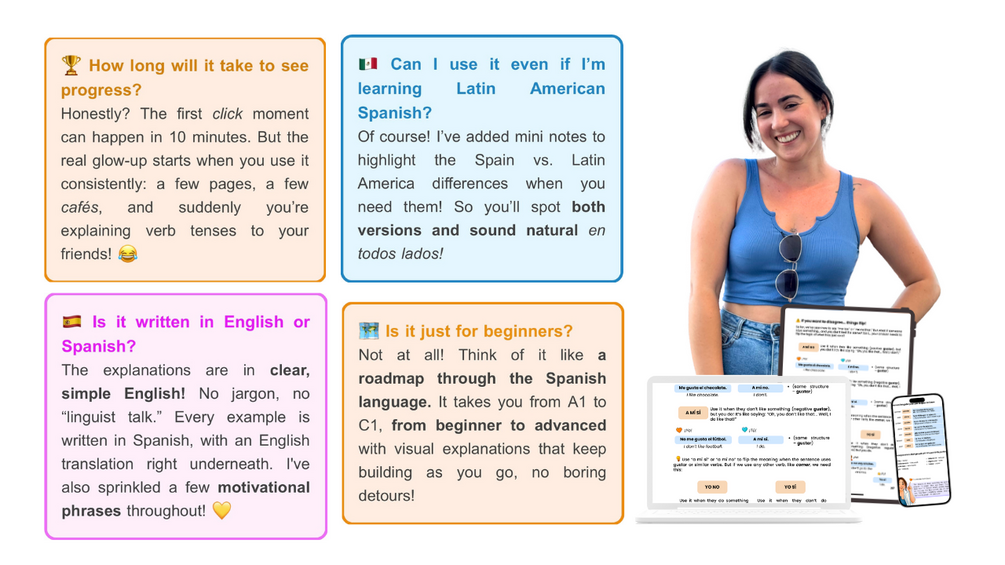 - ✅ Grow step by step → from Spanish grammar for beginners to advanced structures