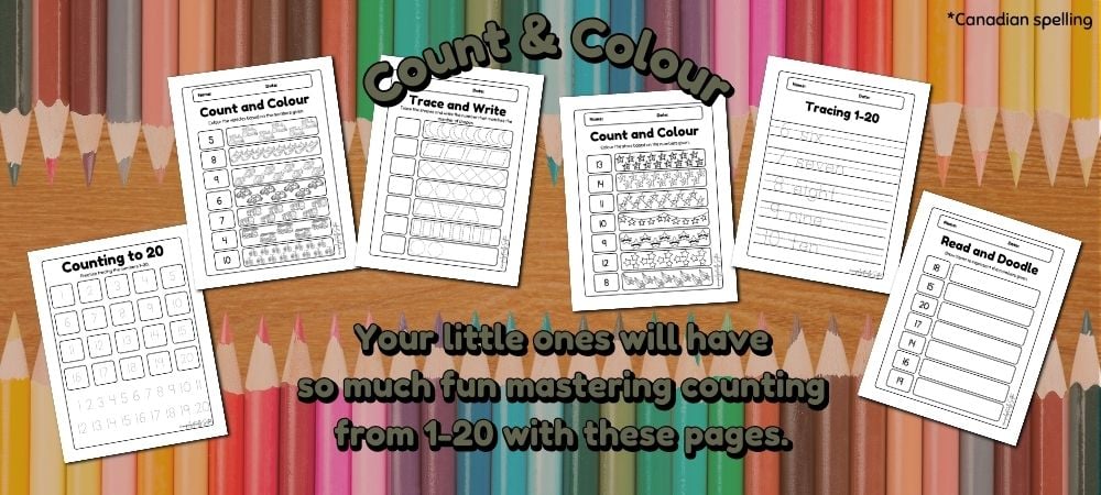 Additionally there are 2 bonus pages, a blank "Count and Colour" as well as a blank "Read and Doodle" should you have specific numbers to work on with your little.