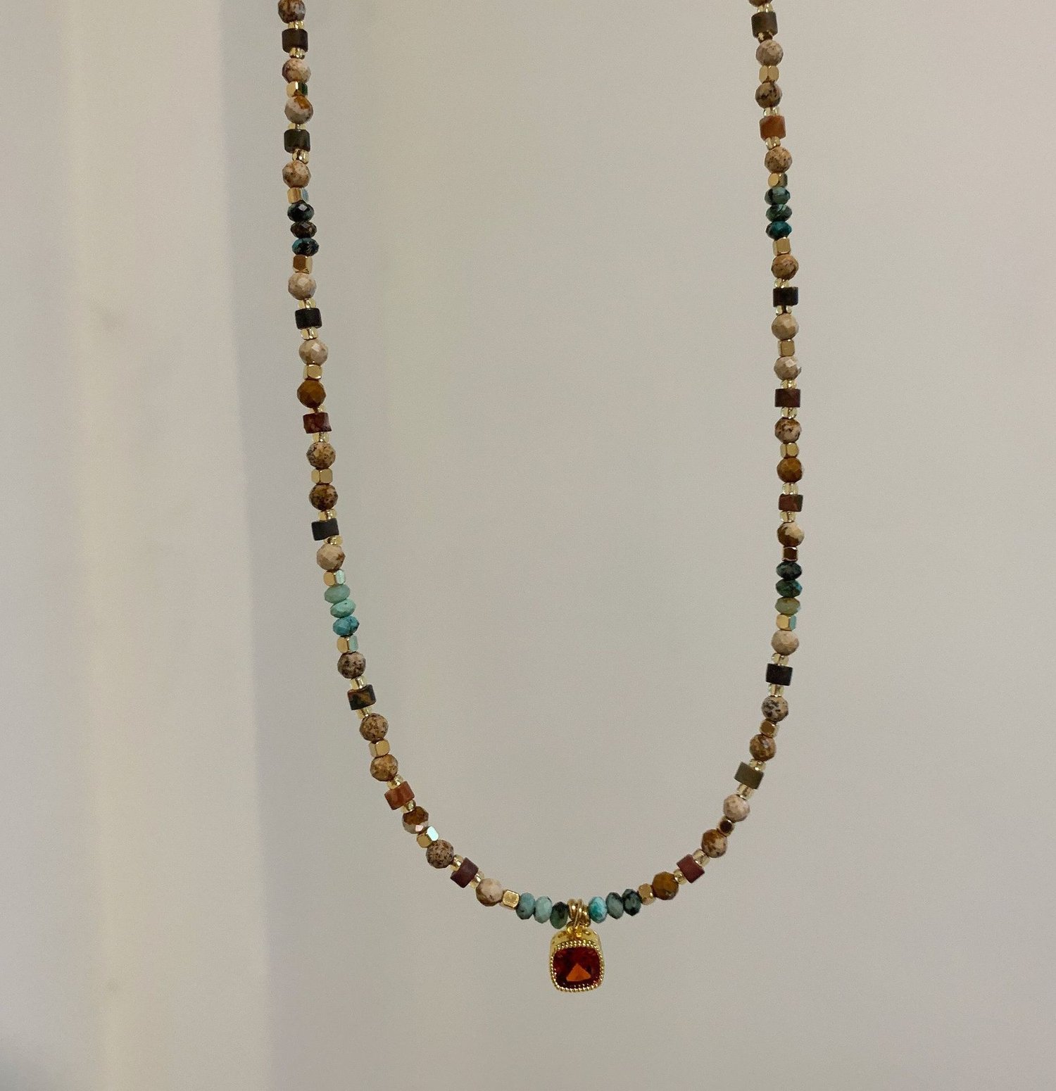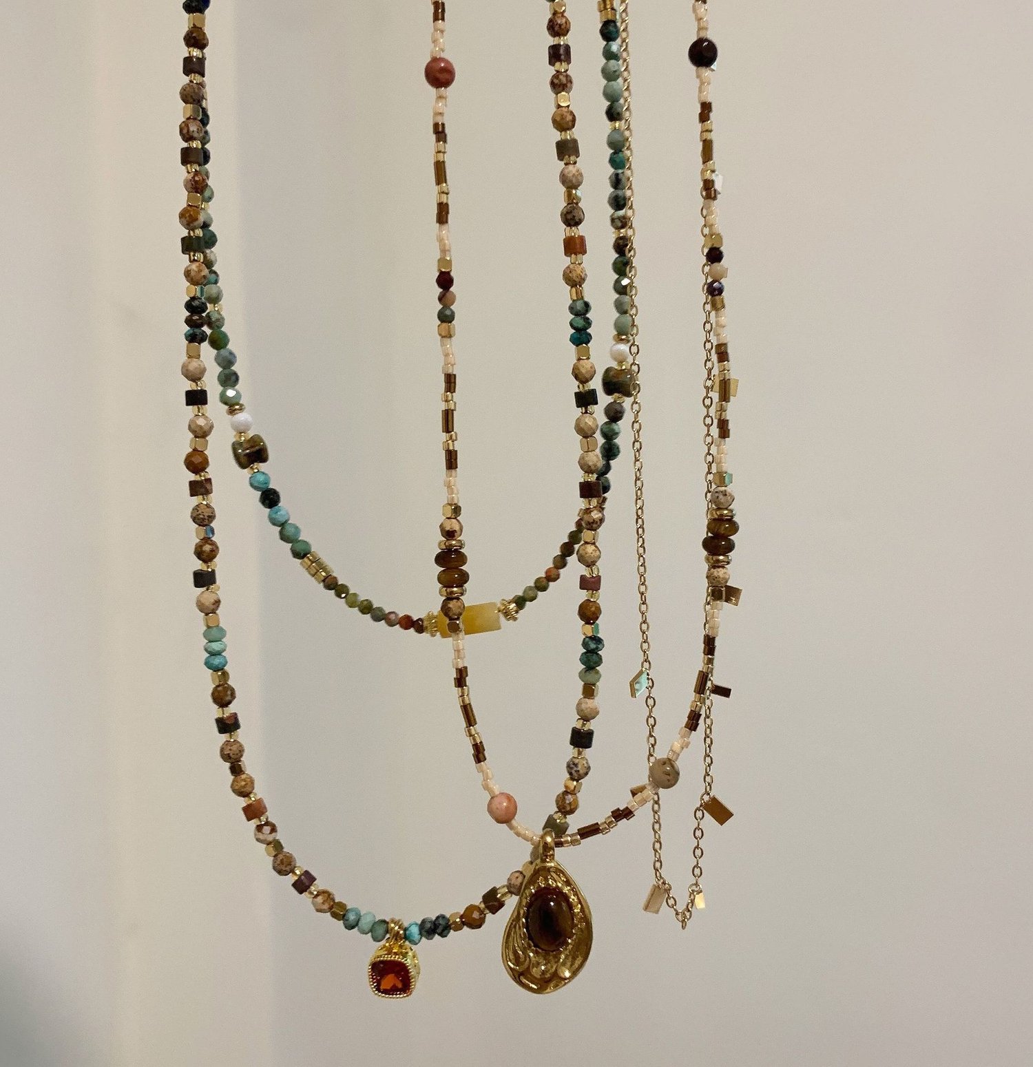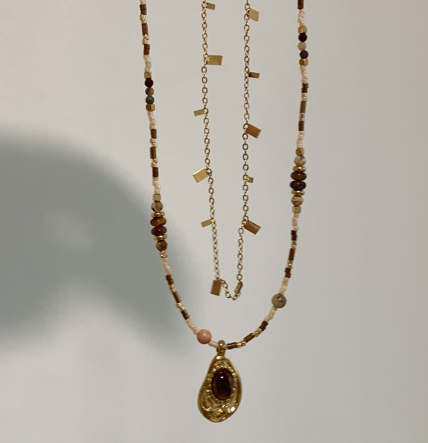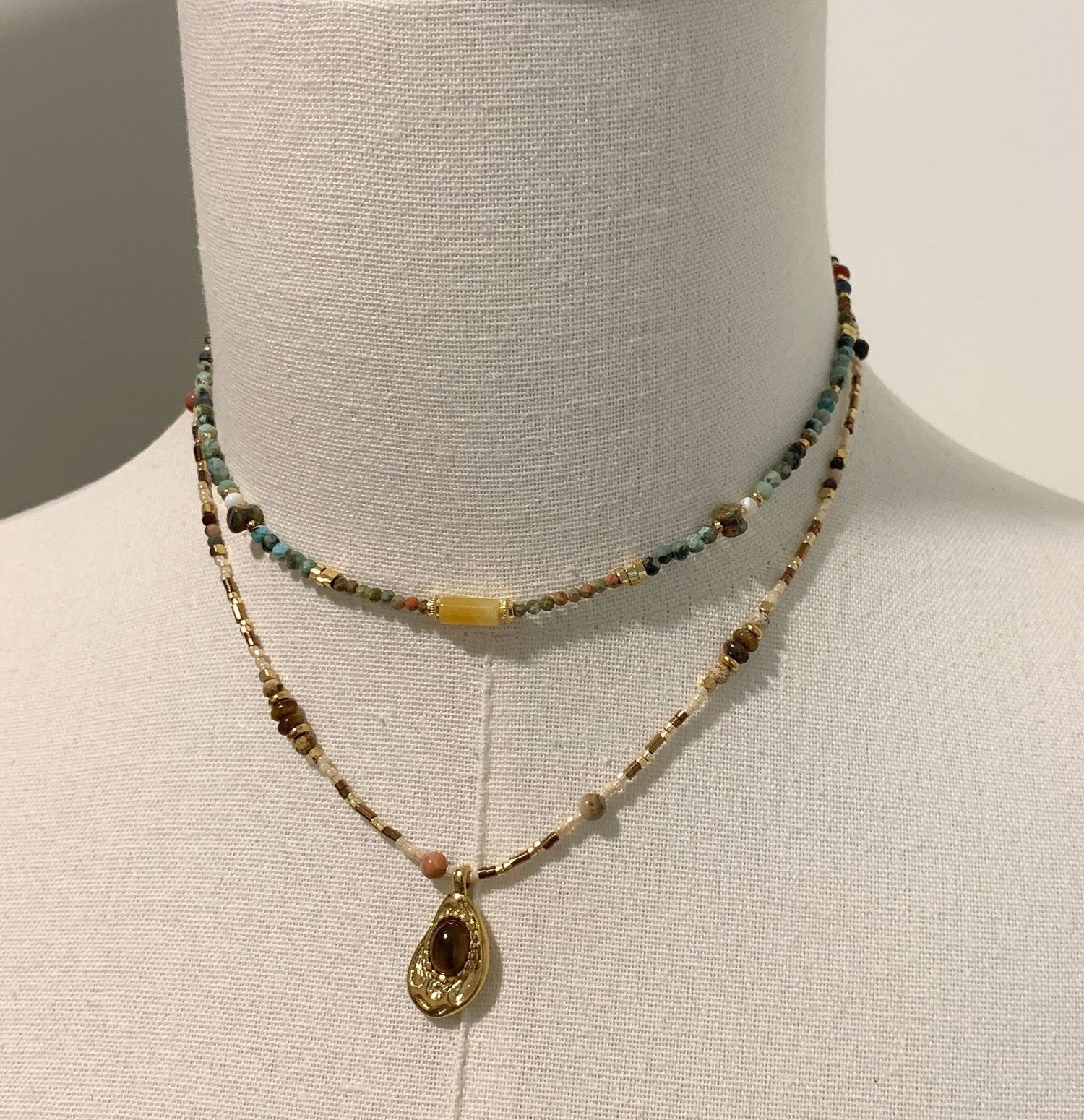 Retro handmade beaded tiger's eye boho stacking pendant necklace