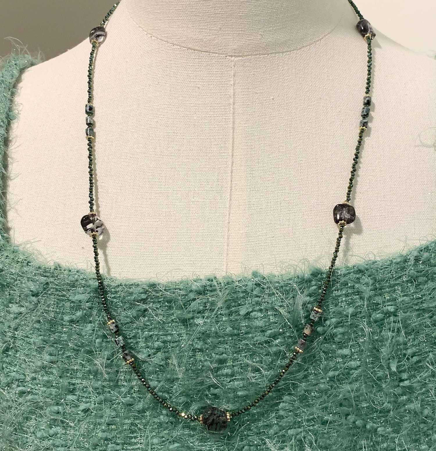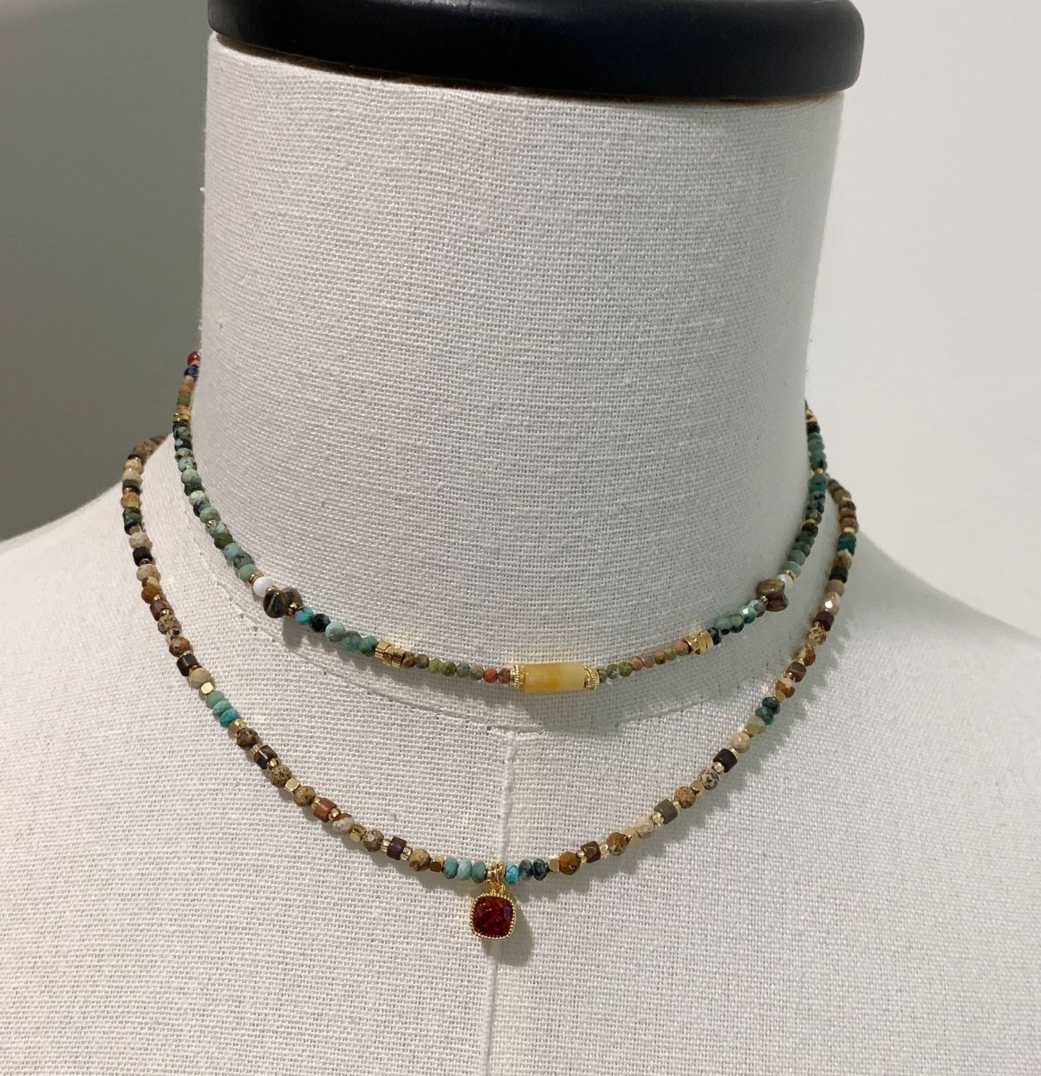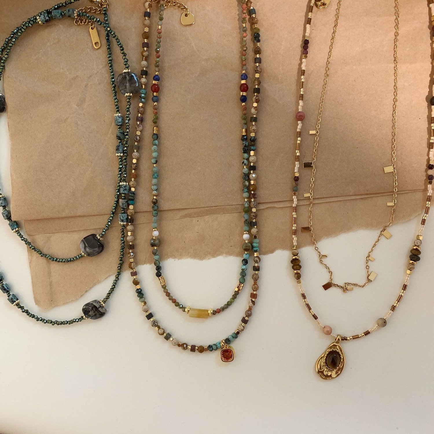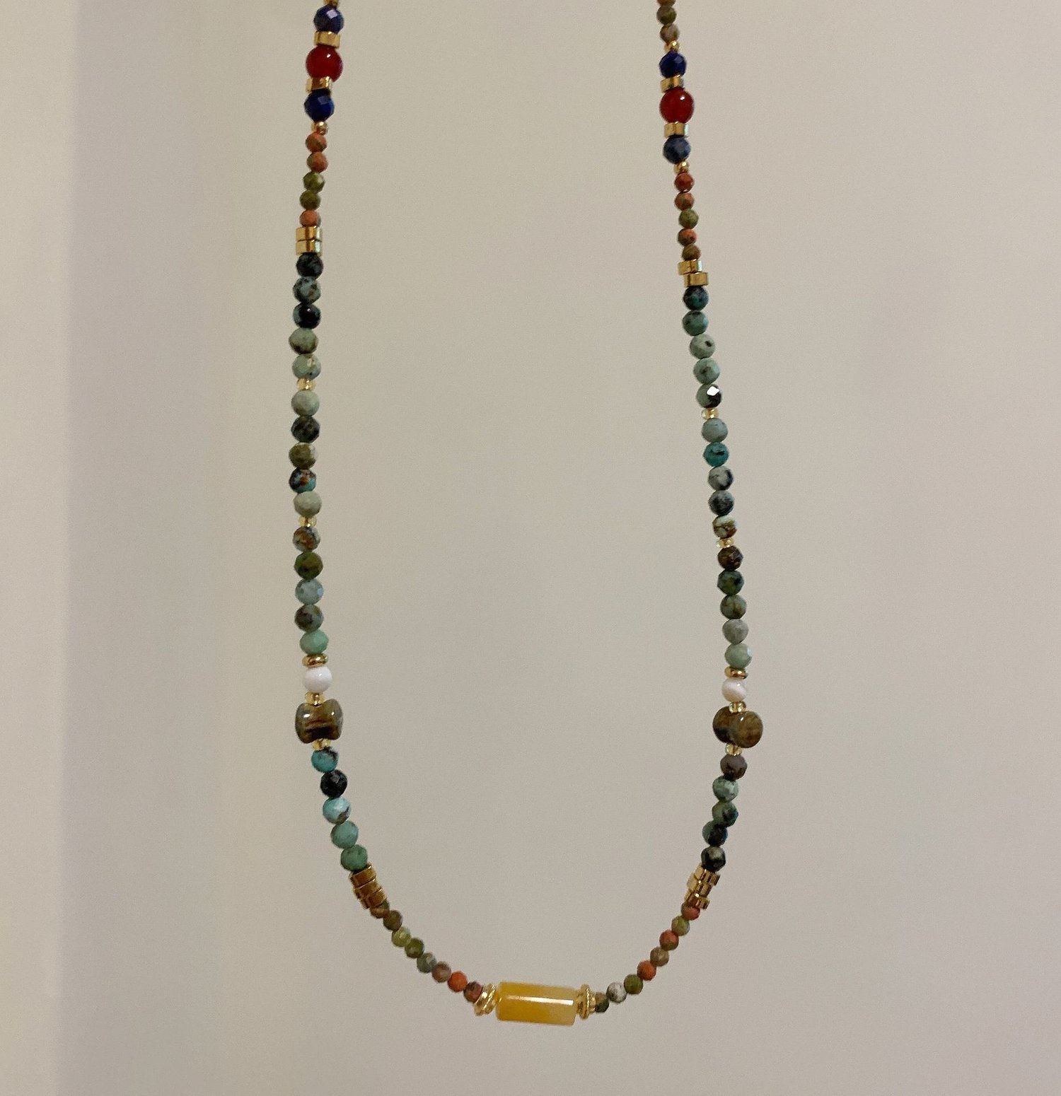 Retro handmade beaded tiger's eye boho stacking pendant necklace