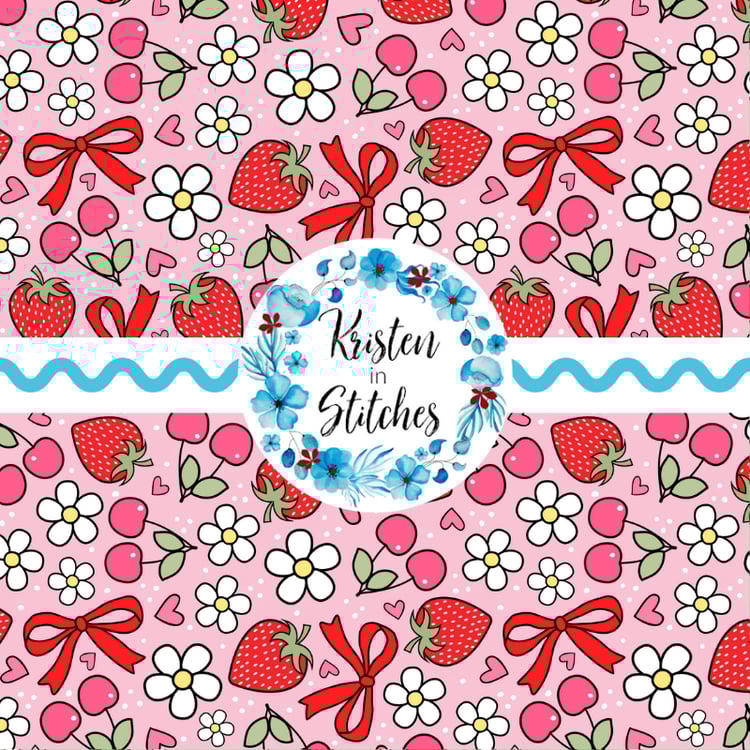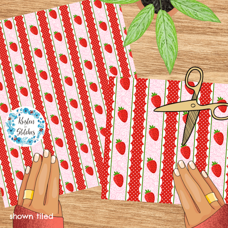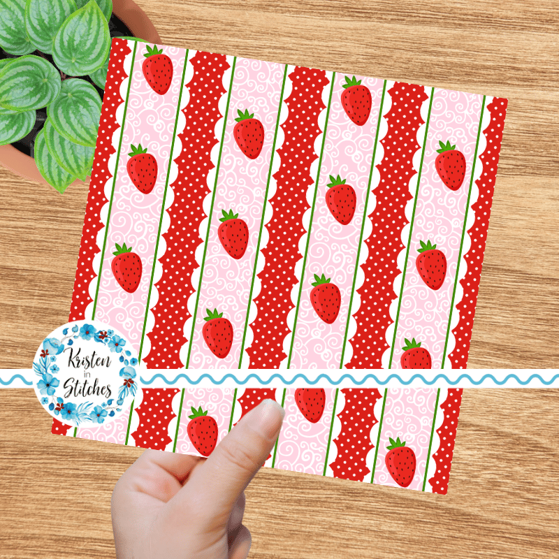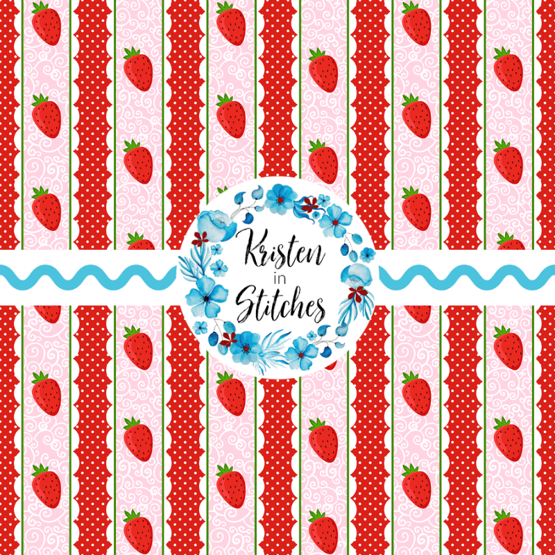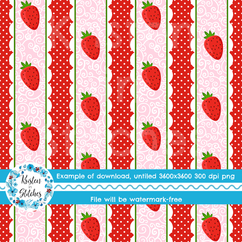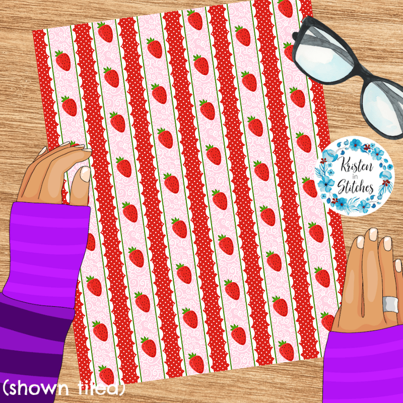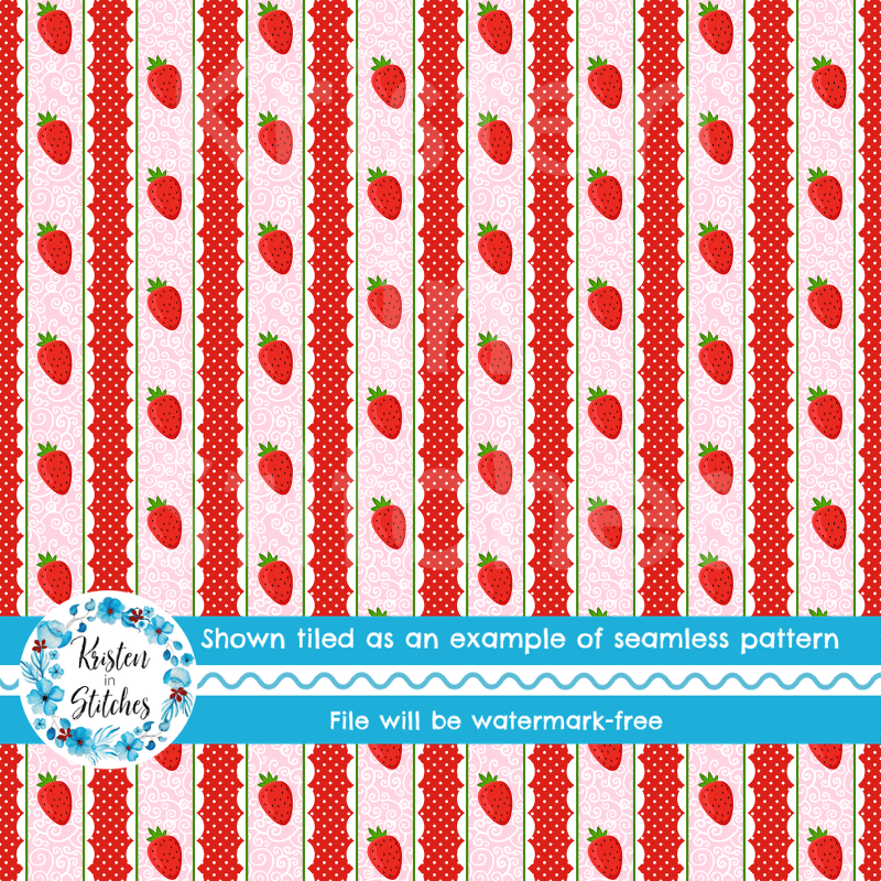 Sweet Lace Strawberry Stripes Seamless Pattern, Red and Pink