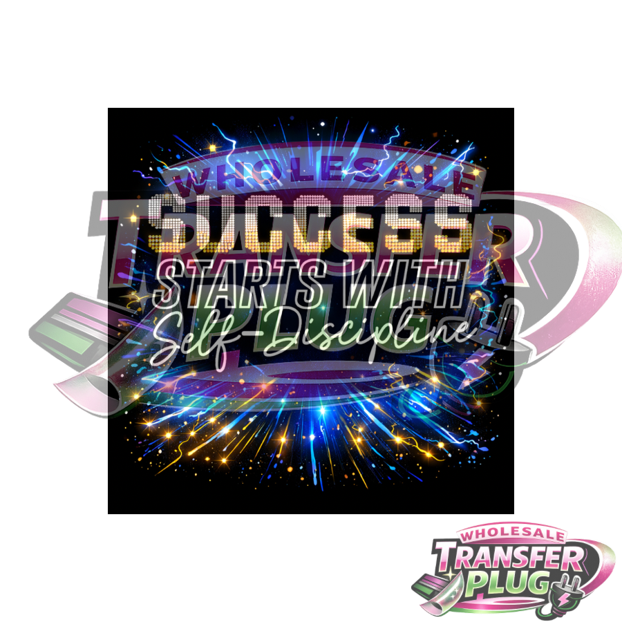 Motivational 3-inch UV DTF transfer featuring a bold "Success Starts With Self-Discipline" design.