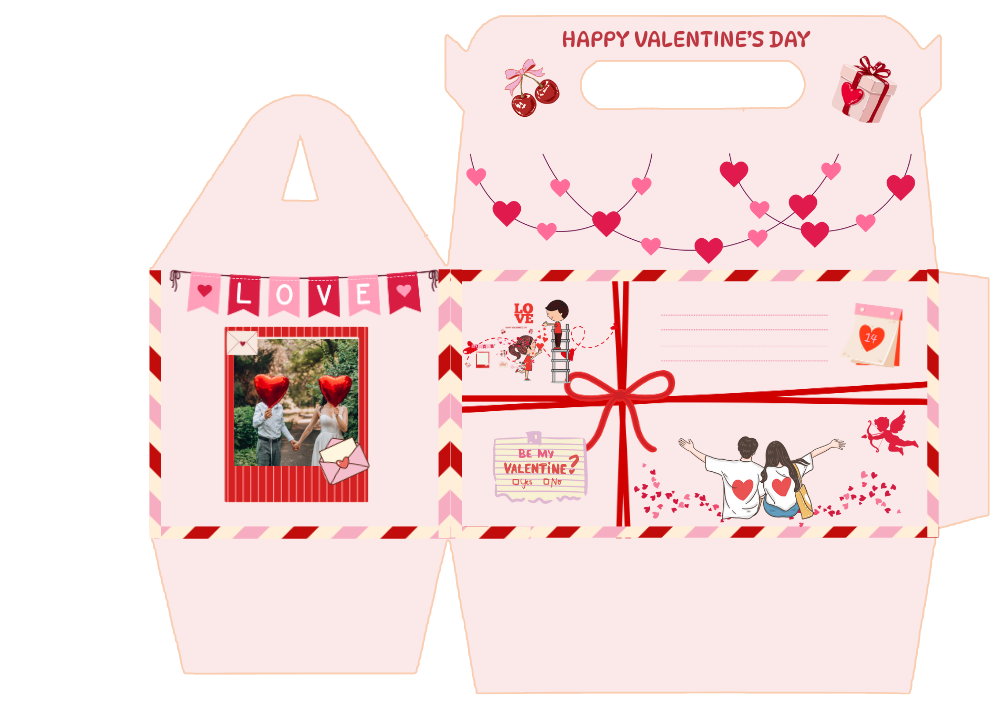 Printable Valentine’s Day Box Template | DIY Photo Gift Box Canva | Personalized Treat Box for Him Her | Cute Love Packaging | Instant Download