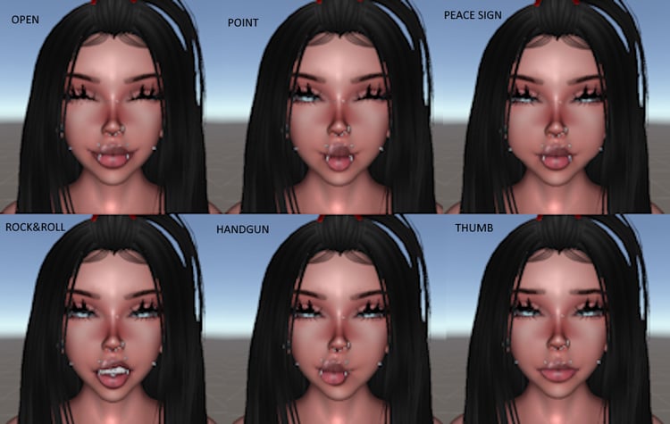 Facial Gestures( Smile, Kiss, Puff Cheeks, Mog, Lip Pout, Annoyed )