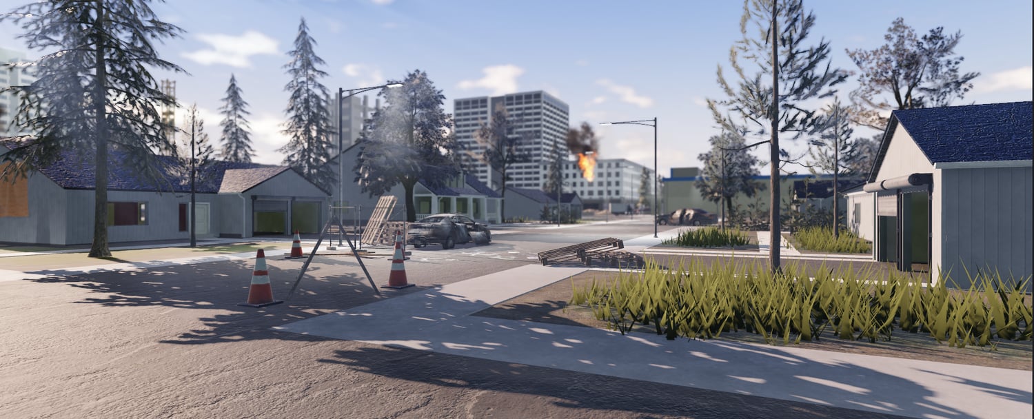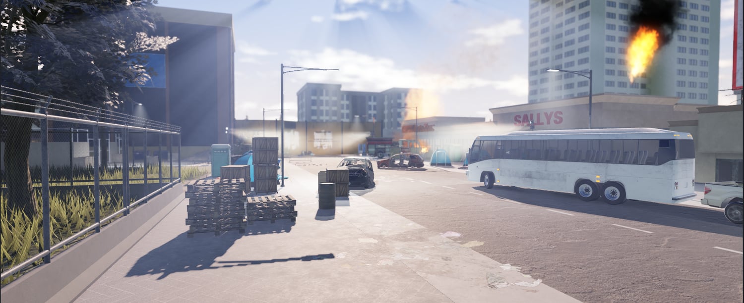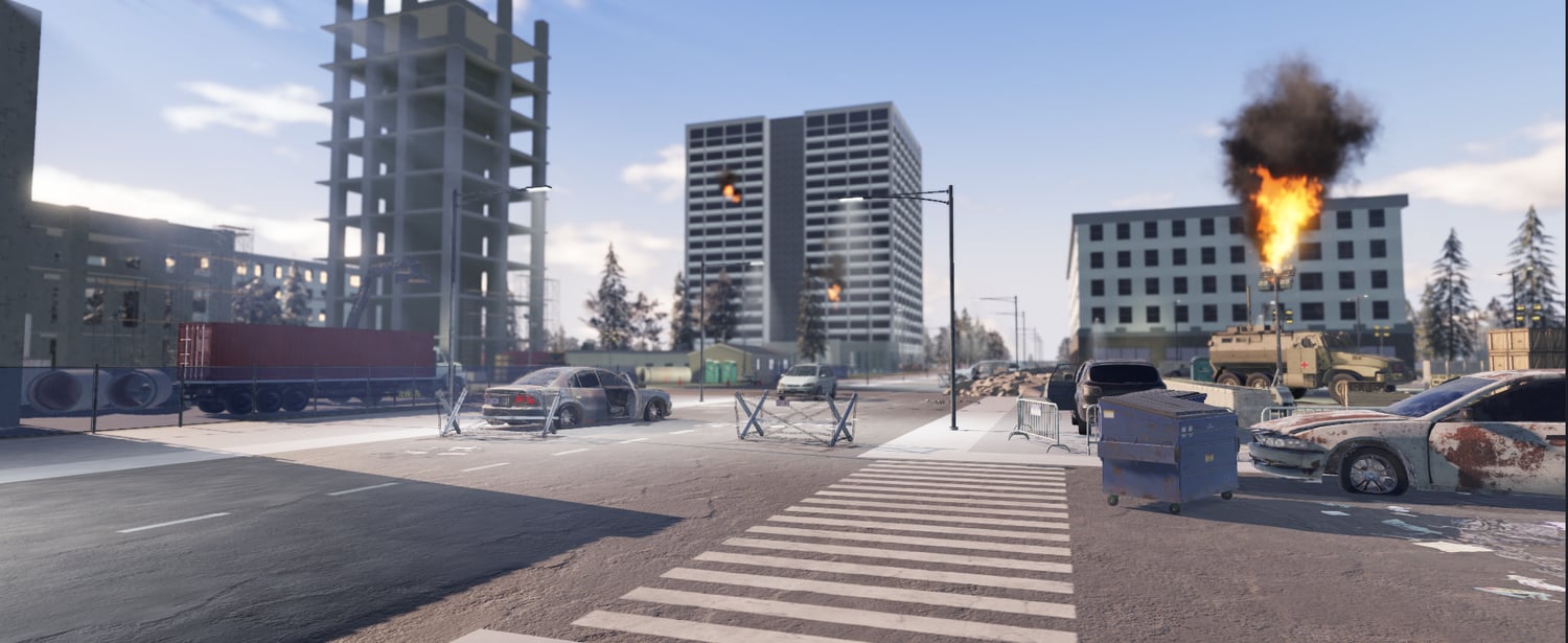 A large-scale environment combining urban remnants, highways, and open terrain. Designed to support large player counts, long-distance movement, and future expansion.
