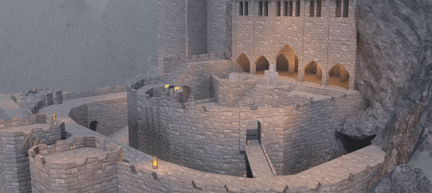 A massive, battle-hardened fortress map inspired by The Lord of the Rings: The Two Towers and the iconic stronghold of Helm's Deep, featuring towering stone walls, a reinforced keep, and the legendary Deeping Wall built for large-scale siege warfare. Designed with detailed battlements, gates, courtyards, and defensive positions, the map captures the intensity of a last stand against overwhelming forces. With rain-soaked terrain, dramatic cliffs, and a dark, cinematic atmosphere, this map is perfect for medieval combat roleplay, allowing players to defend the fortress or launch epic assaults in a truly immersive setting.