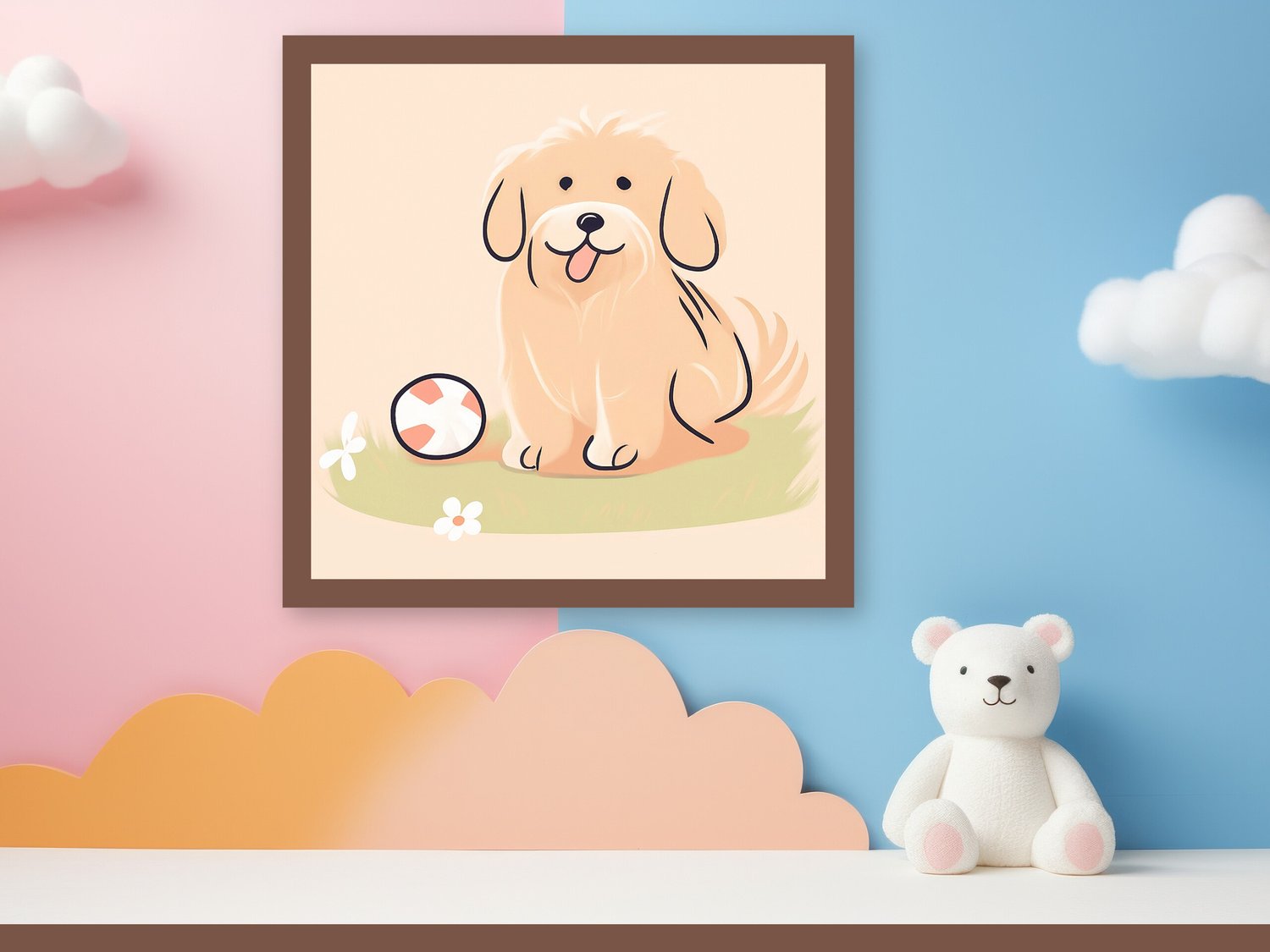 This printable puppy wall art makes a lovely finishing touch for a nursery or a thoughtful digital gift for baby showers and young families.