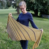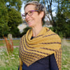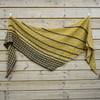 This shawl is an asymmetric triangle knitted sideways from a few cast on stitches. It is mostly garter stitch with rows of slipped stitches to create the pattern and finished with an i-cord bind off.