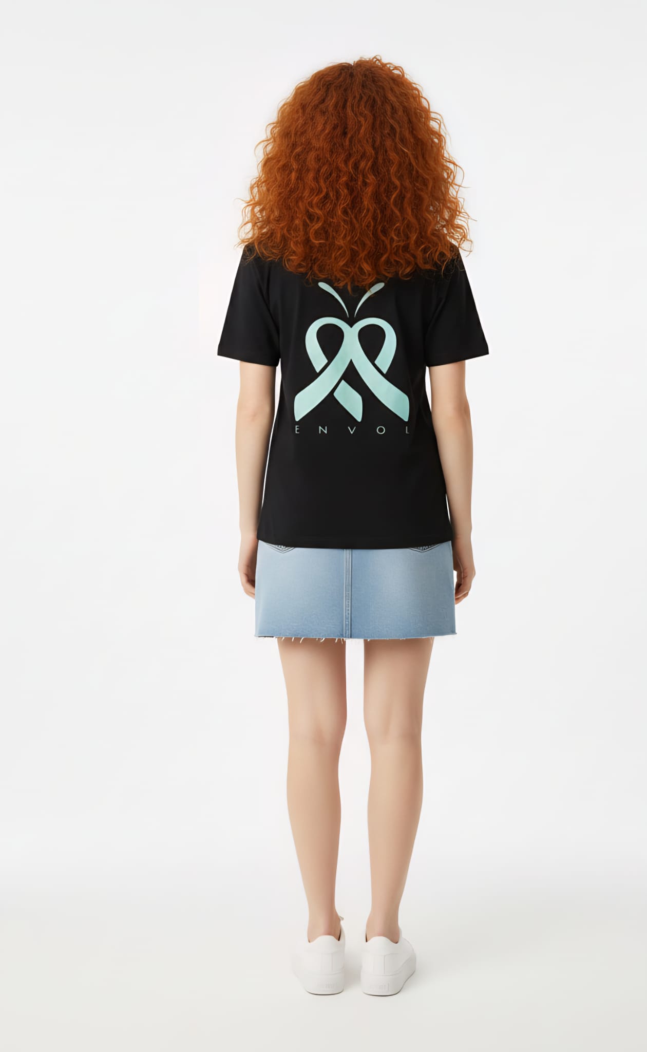 T-shirt noir – Envol Cancer de l’utérus – ( Bleu-vert )
