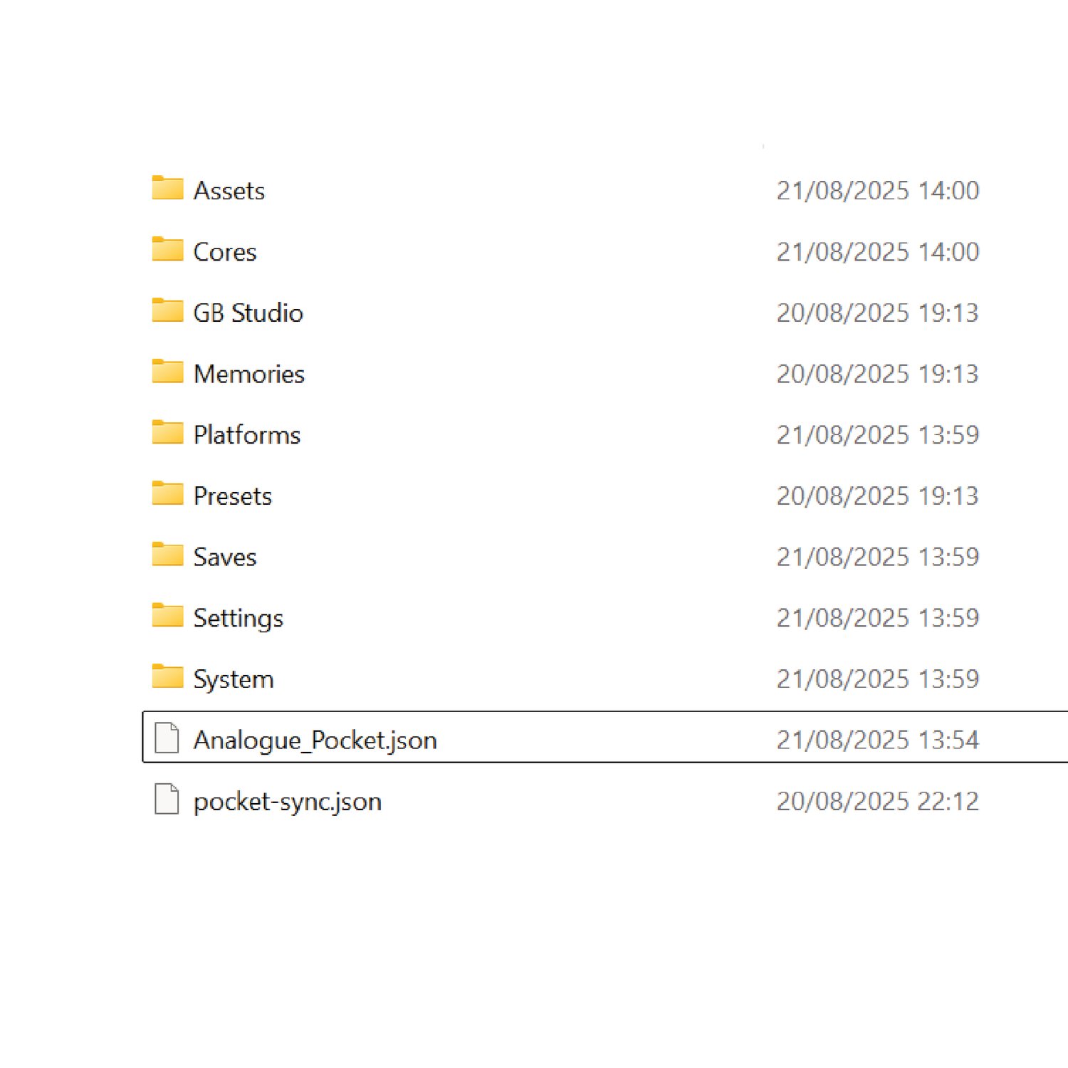 Ce dossier a été conçu pour simplifier la configuration initiale de votre Analogue Pocket. Il contient tous les dossiers système générés automatiquement lors de la première utilisation d’une carte SD, ainsi qu’une arborescence optimisée pour l’ajout de cores, ROMs et BIOS.