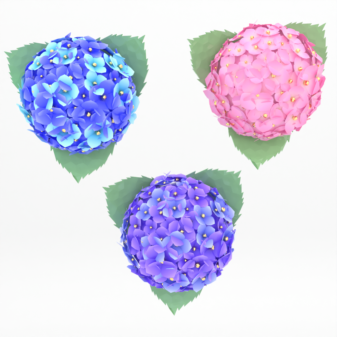 A set of beautifully crafted hydrangea earrings in three colors, ready to use instantly with Modular Avatar & VRCFury support.