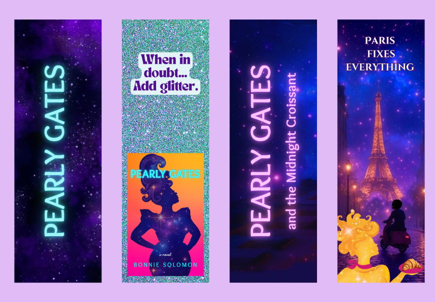 This fan set includes one hand-signed Pearly Gates bookplate (business-card size) and a set of two glossy bookmarks featuring custom series art. Perfect for readers who already own the book and want that personalized touch!