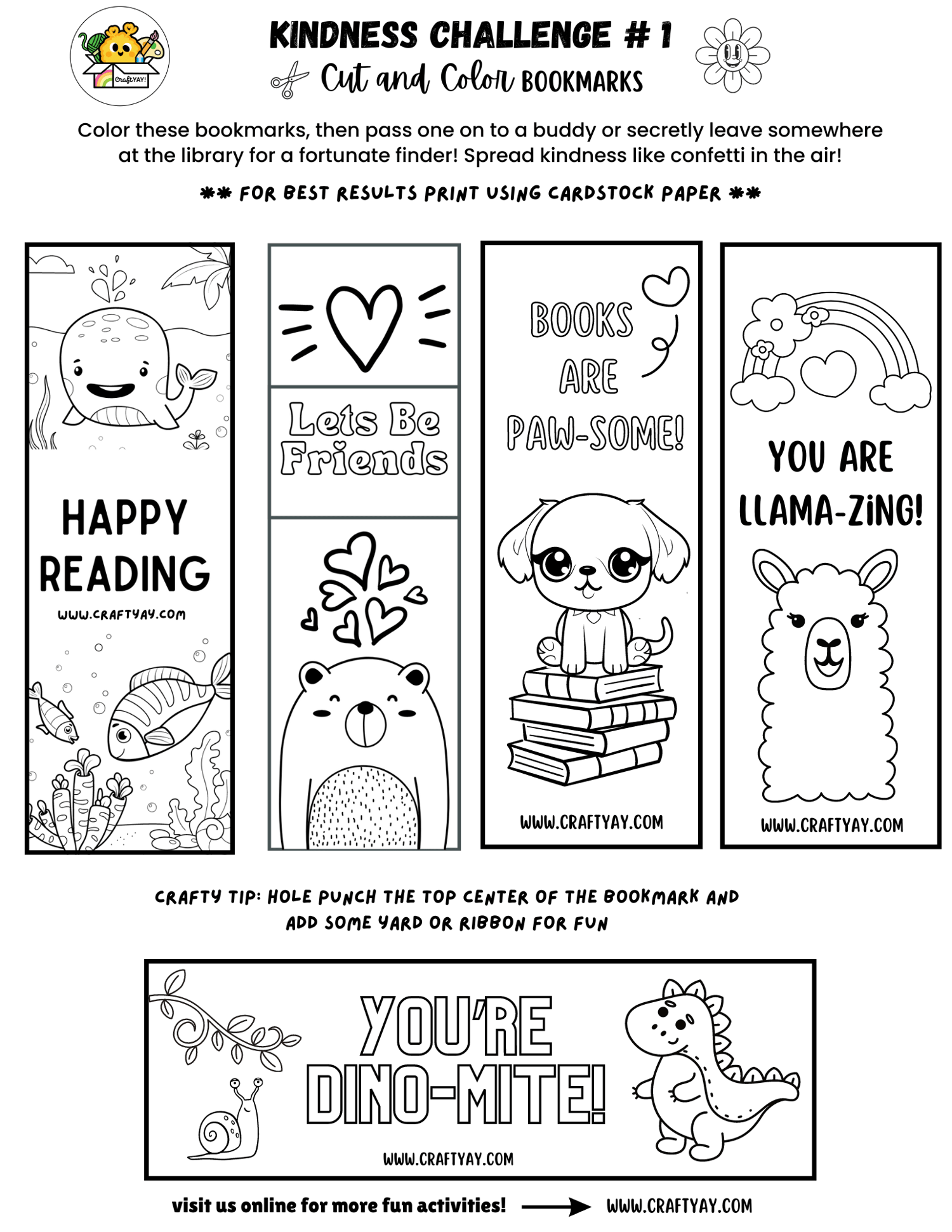 Kindness Challenge #1 - Cut & Color Bookmarks
