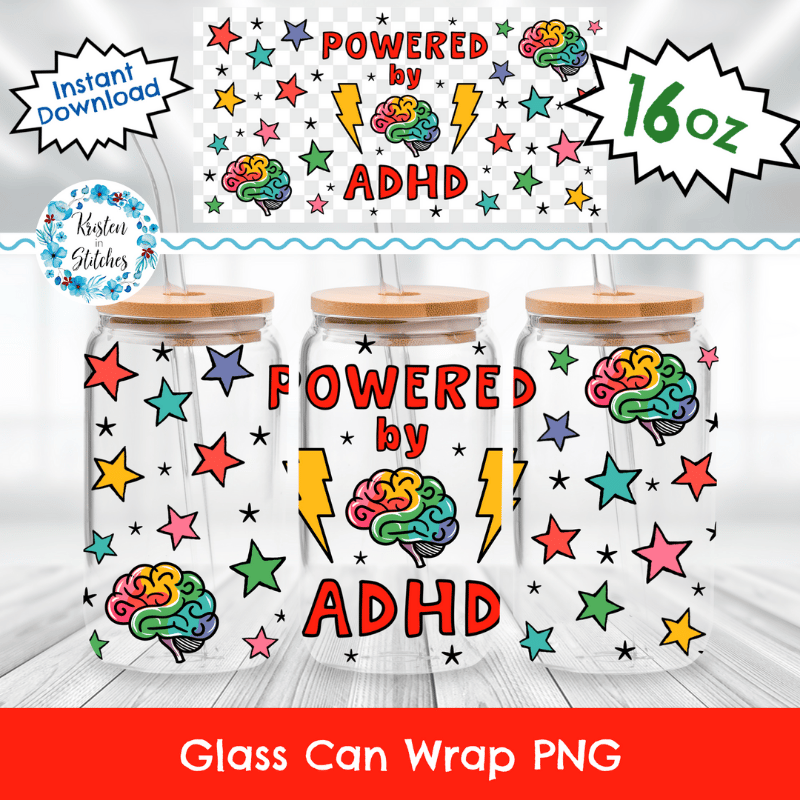 Powered by ADHD Glass Can Wrap Transparent PNG, Rainbow Mental Health Brains