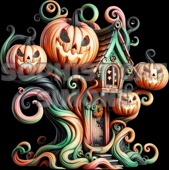 Birds, pumpkins and flames dancing.