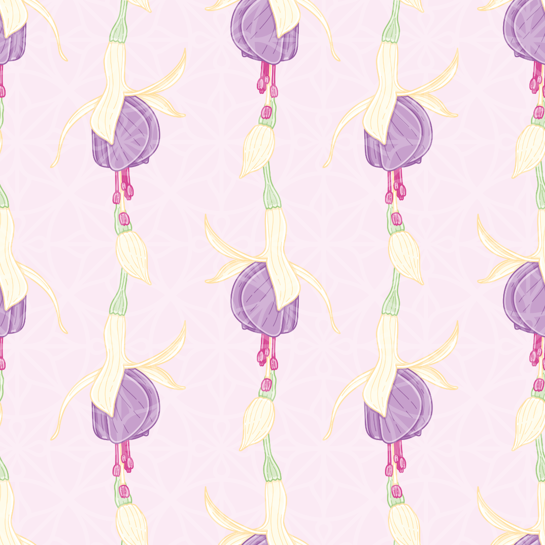 Fuchsia flower and buds seamless vector pattern. Purple and magenta floral illustration background.