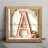 Every image features a large, centered letter surrounded by delicate touches of lace, vintage roses, and a thin gold frame. The consistent color palette of pink, cream, and gold tones creates a harmonious flow throughout the series. Each letter tells its own story while maintaining a cohesive look, perfect for decorative purposes or as a unique typographic art collection.