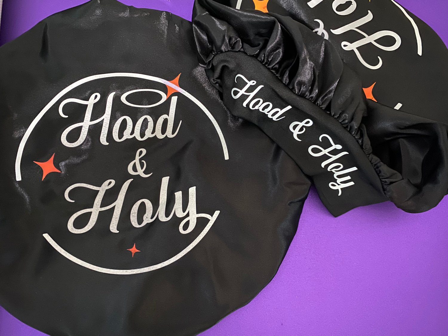 HOOD & HOLY™ CUSTOM SATIN BONNETS – BRAND STAMPED. FAITH FILLED. BAD & BLESSED.