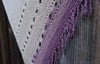 Reed shawl begins with a small cast on and is increased on one side into an asymmetric triangular shape. It uses garter and eyelets for the body of the shawl. The rows of cross stitches along the border and the twisted fringe bindoff reminds me of the criss-cross patterns made by tall reed stems alongside lakes and streams.