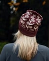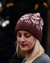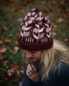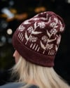 This hat is constructed from the bottom up and is worked in one piece. After working the folded ribbed brim, the body of the hat is worked with the stranded colorwork technique. A chart for the colorwork is provided. Written instructions for the chart are also included.