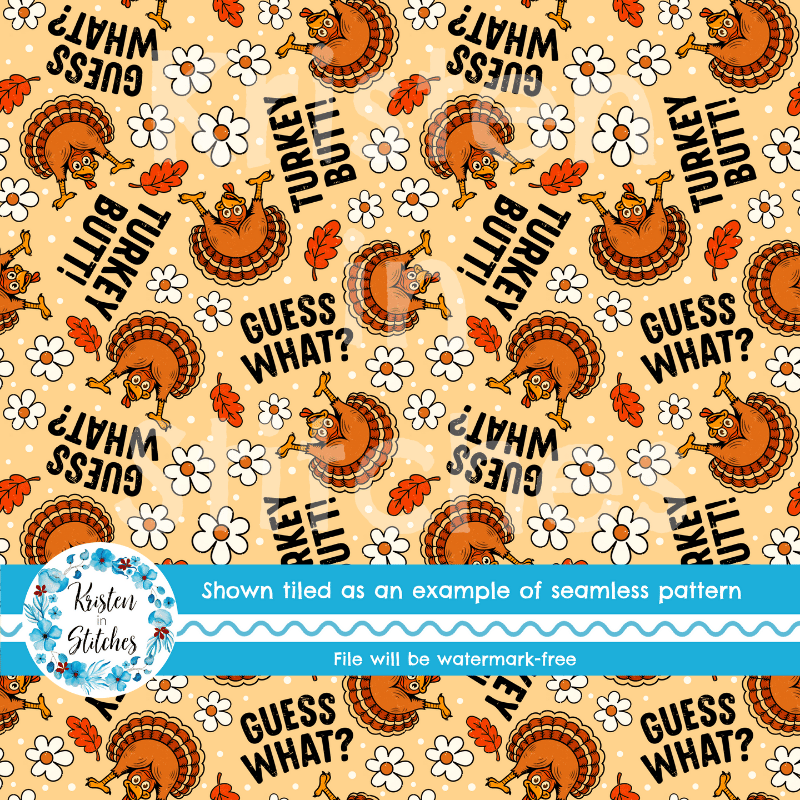 Guess What? Turkey Butt! Sarcastic Thanksgiving Seamless Pattern