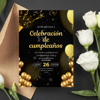 🎉✨ Invitación para Fiesta de Cumpleaños Moderna en Negro y Dorado 🖤🌟
