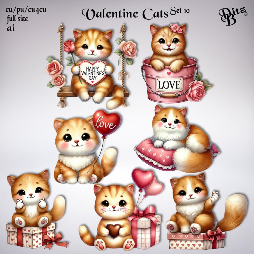 Valentine Cats Set 10