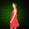 Turn up the heat with this vibrant Women’s Skater Dress, designed to make a statement wherever you go. The flattering high-cut neckline and unique asymmetrical skirt create a chic, playful silhouette, while the bold red hue radiates confidence and style. Perfect for date nights, birthdays, brunch, or festive gatherings, this dress blends comfort and flair for unforgettable moments.