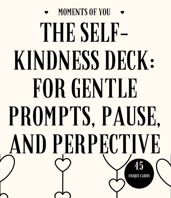 Give yourself permission to pause, reflect, and breathe with the Self-Kindness Deck - a printable collection of 45 beautifully designed cards featuring calming affirmations, mindful prompts, small rituals, mindful actions, and simple self-care.