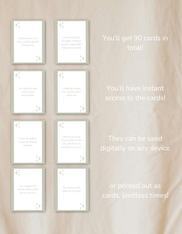 - Mindset Shift: These resilience affirmation cards guide you toward a mindset shift, empowering you to see setbacks as opportunities for growth and self-discovery.
