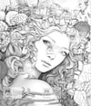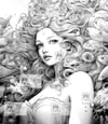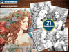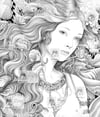 Adult coloring book with 21 stunning illustrations in 11 x 8.5 inches size, with a style that evokes the famous painting The Birth of Venus by the Italian Renaissance painter Sandro Botticelli..., that same long-necked Venus😉.