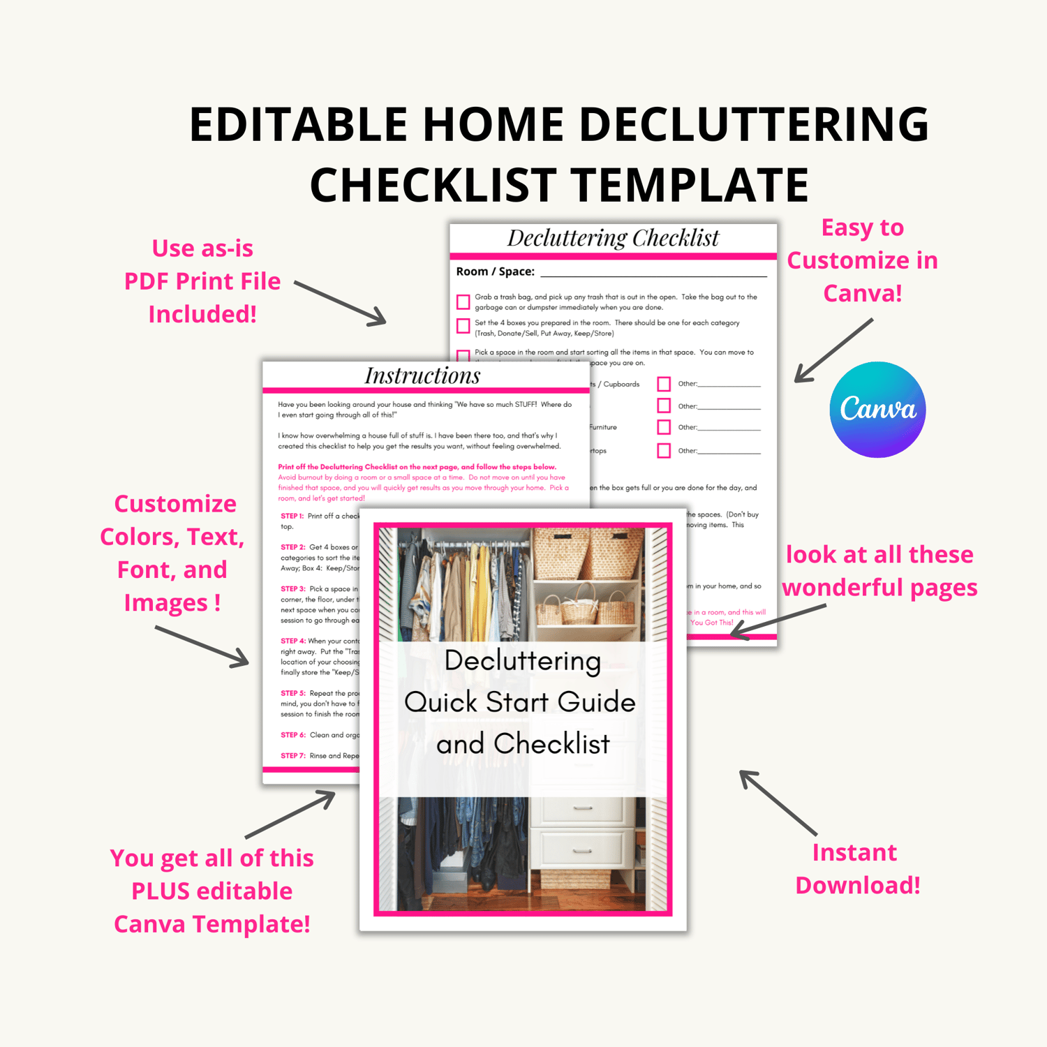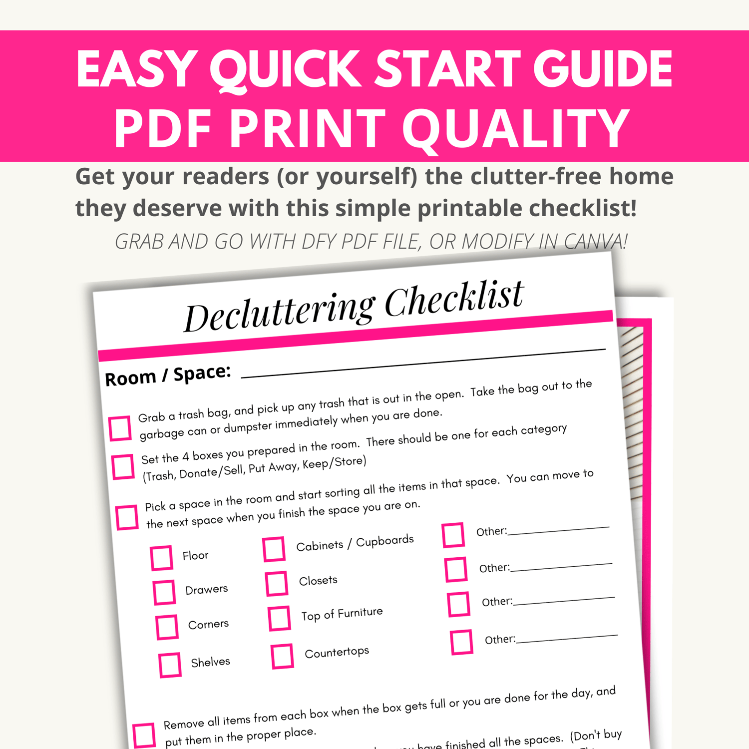 THIS DECLUTTERING QUICK START GUIDE AND CHECKLIST TEMPLATE BUNDLE INCLUDES: