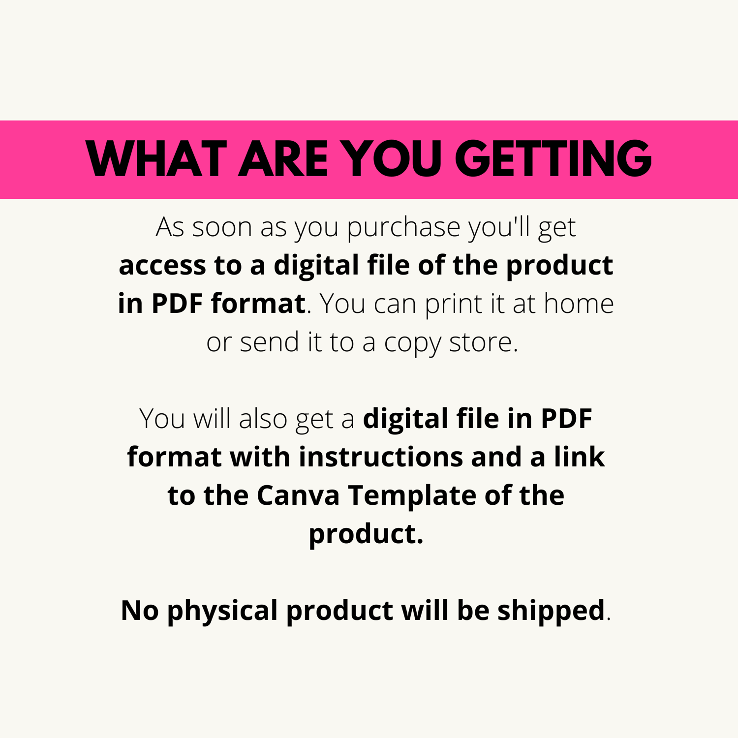This digital product includes 3 EDITABLE CANVA TEMPLATES and PDF High Quality Printable File