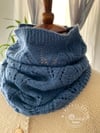 The Brea Cowl knitted in the round, calls for one 100 gram skein of fingering weight yarn. This cowl is a fun and easy knit, suitable for beginning lace knitters and interesting enough for advanced lace knitters.