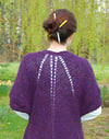 Worked top down, it includes options for both long and short sleeves and is virtually seamless (with just a tiny hole at the underarm to close up). All you need to do is measure your knitting in inches or cms throughout the pattern according to the size you want to create. The body is knit flat in one piece, including the tops of the sleeves.There is no picking or joining in of sleeves: like the contiguous method, live stitches for the sleeve are left hanging and are worked later by being joined in the round and continued.