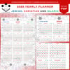 The Christian (Gregorian) calendar is used world-wide as the universal calendar for business, much like English is a universal business language. The Jewish and Islamic calendars are still in use today by members of those faiths and in certain countries. As a result, calendars combining one of these with the Gregorian calendar are readily available, but this calendar combines all three so we can all use the same one.