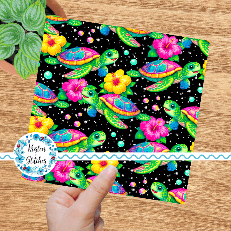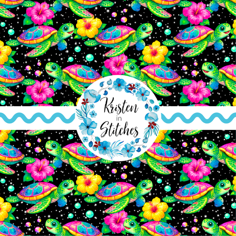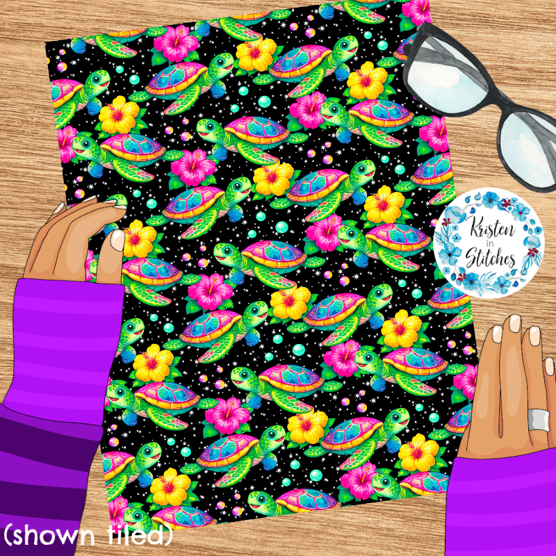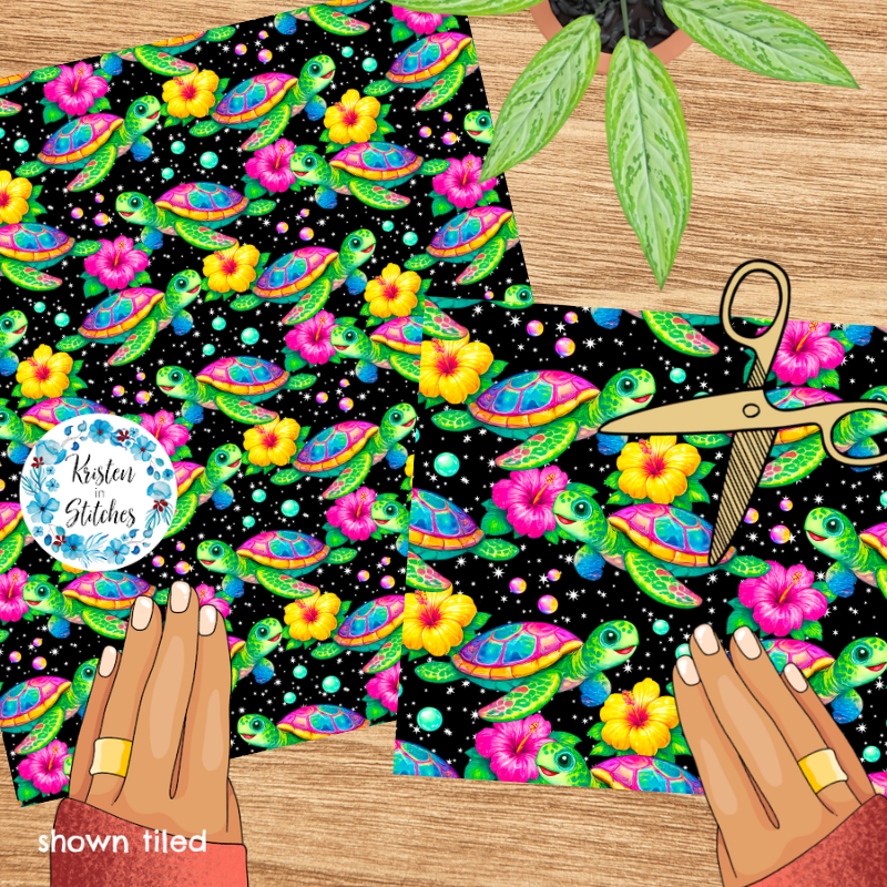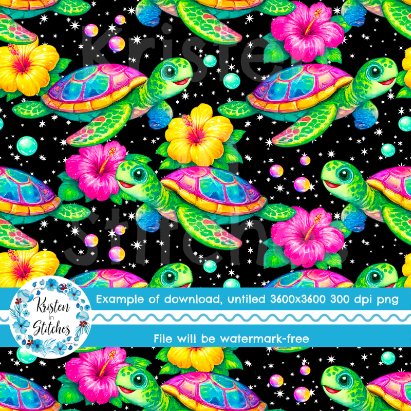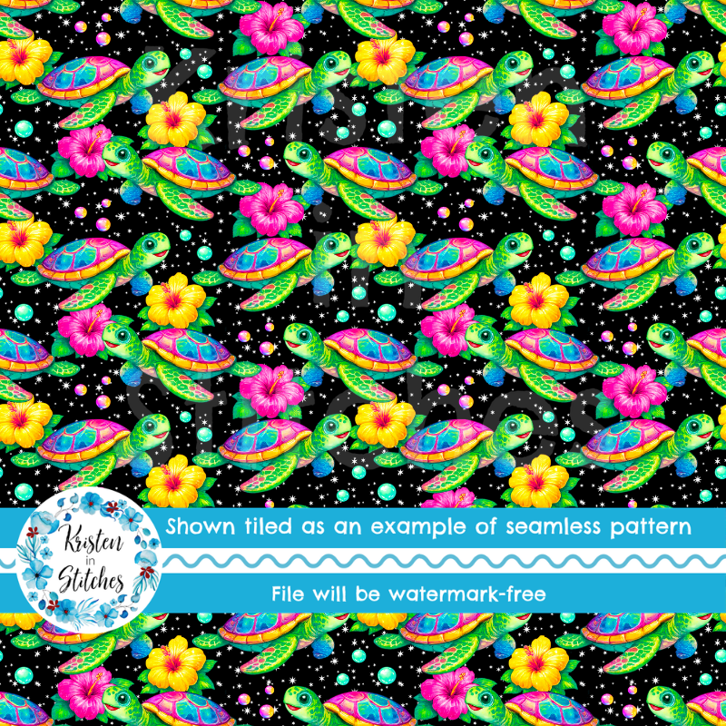 Tropical Ocean Paradise Seamless Pattern, Rainbow Sea Turtles