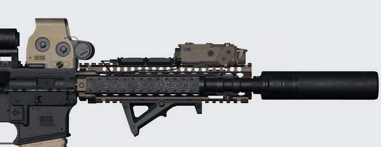 The Daniel Defense MK18 is a compact, battle-proven CQB carbine built around a short-barrel (typically 10.3–10.5") platform with premium Daniel Defense components. Favored by special operations and urban units for its maneuverability, durability, and top-tier ergonomics, the MK18 delivers rapid target transitions and dependable performance in close-quarters and vehicle-based roles. Modeled for MILSIM, this rifle offers realistic handling, modular customization, and high-fidelity visuals ideal for fast-paced engagements.