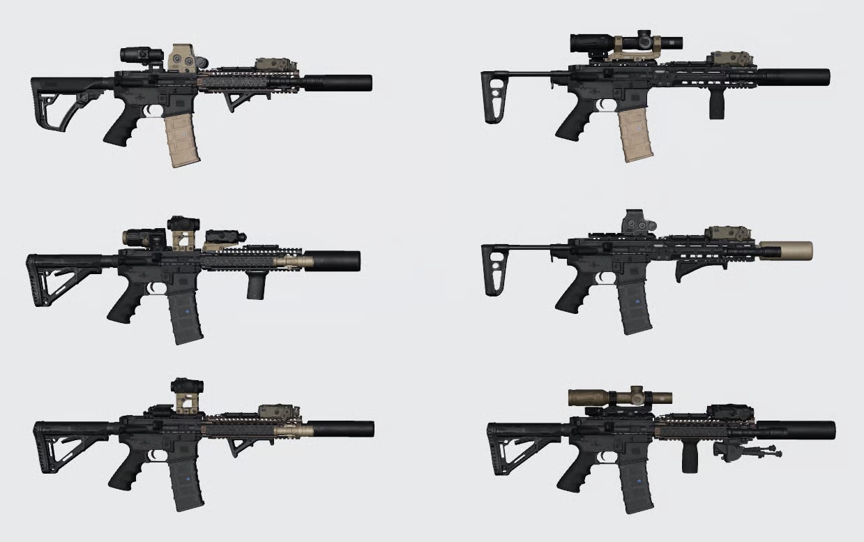 - Visuals: High-detail model with realistic iron sights, optic overlays, and customizable finishes (FDE / Black / OD)