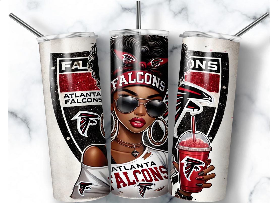 Atlanta Falcons Messy Bun 20oz Sport Tumbler Wrap PNG Digital Print Sublimation Bundle