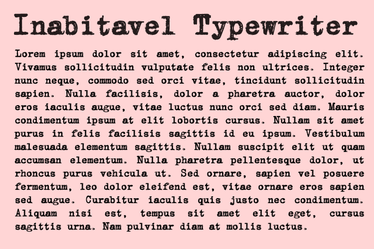 The Inabitavel Typewriter is a unique typewriter font design, great for mimicking the effect of typewriting older machines. Has an erased and much-inked style, good for exquisite designs.