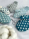 You will need 2 sizes of your preferred type of needles for small circumferences: DPNs, or ~42-32” / 60-80 cm circular needles for ‘magic loop’, or 8-10” / 20-25 cm shorties.