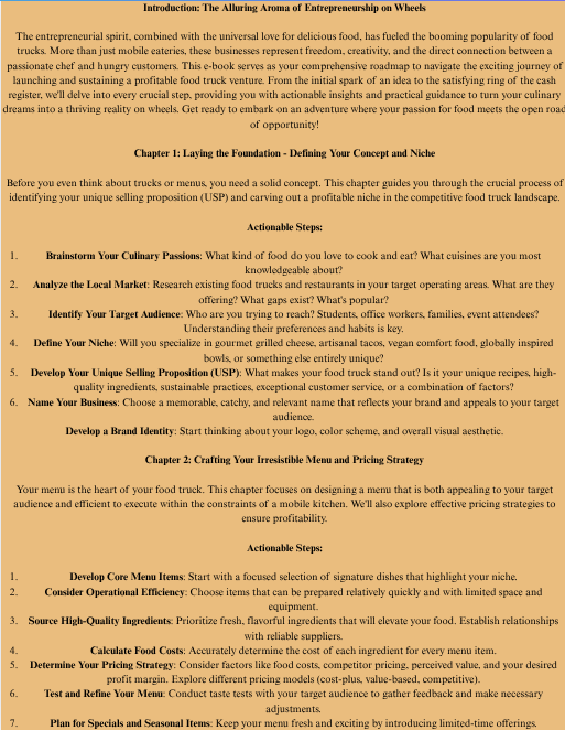 This isn't just another dry business manual. Think of it as your seasoned mentor, your trusted co-pilot, guiding you step-by-step through every crucial stage of launching and scaling a successful food truck in today's competitive landscape. From igniting your unique culinary vision to mastering the art of mobile operations and building a loyal following, The Mobile Feast leaves no stone unturned.