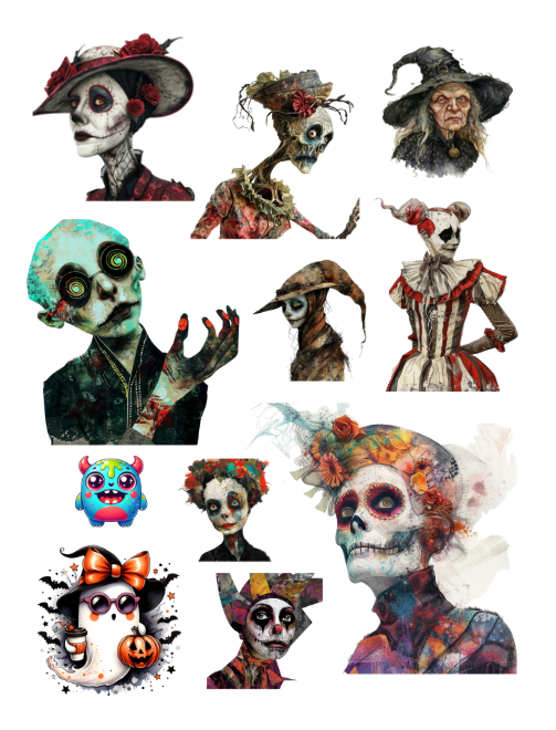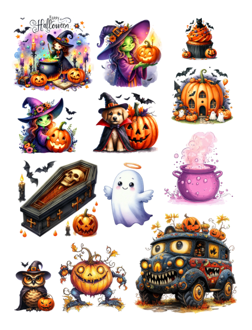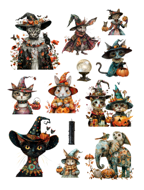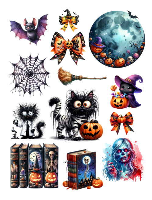 This Spooky Halloween Ephemera to Cut and Collage Book features gorgeous elements including ghosts, goblins, Halloween-themed coquette bows, haunted houses, witches, spider webs, skeletons, bones, monsters, pumpkins, jack 0'lanters, Kawaii elements, candy, pumpkins, graveyards, animals, books and library elements, tags, movie theater tickets, vintage Halloween elements, children, costumes, eyeballs, decorated houses, creepy people and much more. Decorate your planner with these ephemera pieces, it's all the rage!