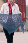 Geometric lace forms textured diagonal diamond lanes leading upward and outward on this simple but stunning triangular shawl.