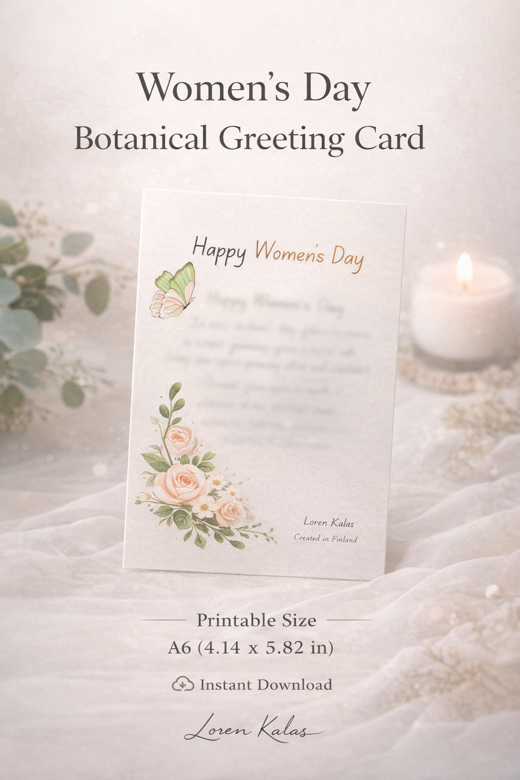 🌸Women’s Day Wishes – Botanical Greeting Card (Printable A6)