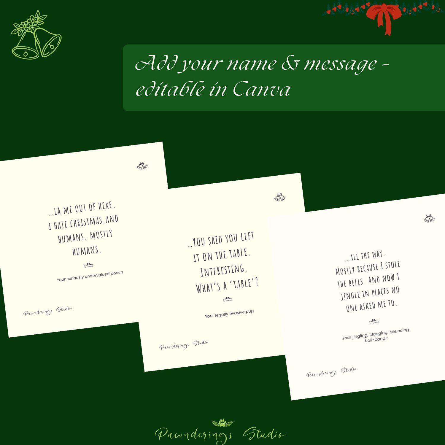Pawnderings: 15 Cheeky Dog Christmas Cards – Editable Canva Templates