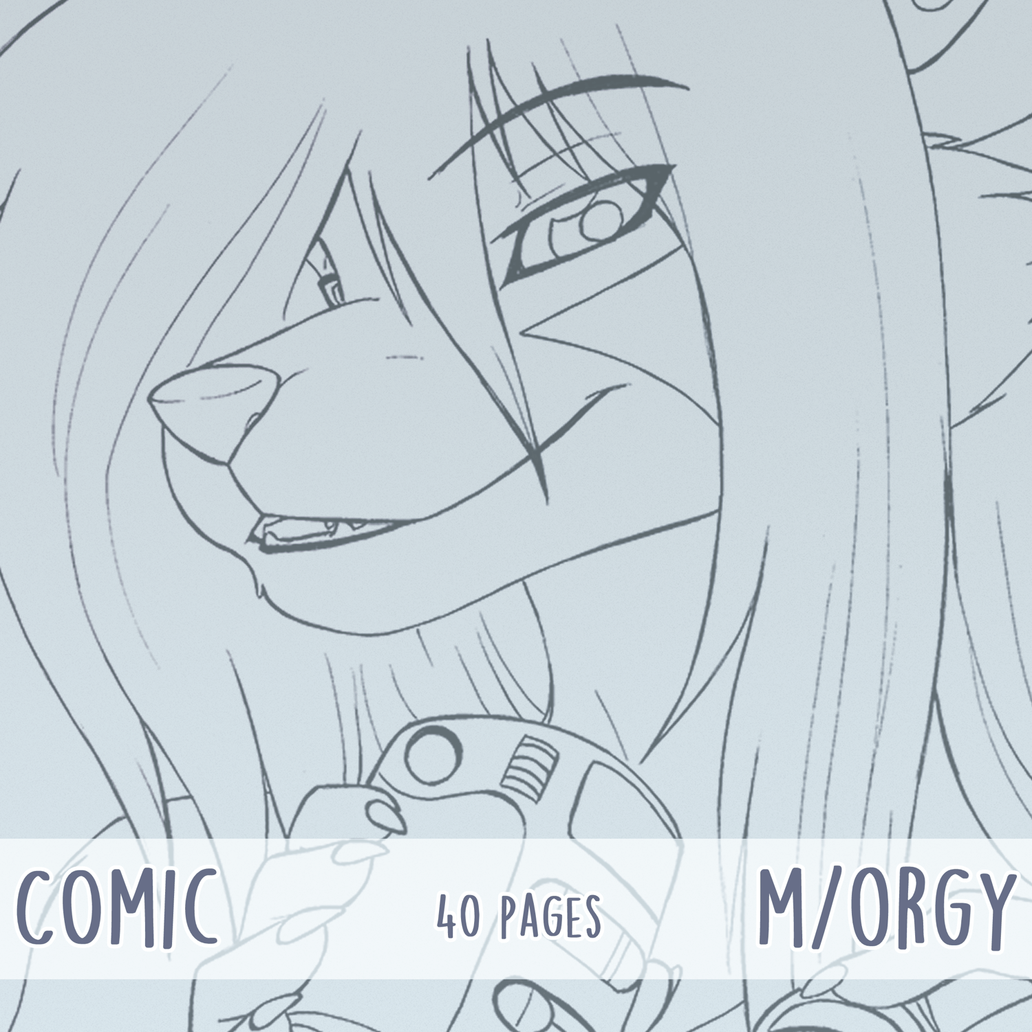 "Futuristic Play" is a simple porn comic featuring Narmoluin, Noein and some other friends while they try out futuristic toys. It's 40 pages + two cover pages long and fully inked. 8 pages are colored. Thank you to Ted Jones and ShadowJumper for letting me use their characters Roy and the Lion.