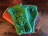 The Mori Lace Gloves use a simple lace at the wrist to create a gentle ruffle, then proceed up the hand with geometric lace at the back (bordered with a subtle 1×1 cable on each side) and a simple thumb gusset. There are special instructions for a bind-off that hits the sweet spot between stretchy enough for finger and thumb movement, and firm enough to not stretch out of shape. None of the lace stitches are exceedingly advanced; any intermediate lace knitter or adventurous beginner could have an easy time making a sweet, rustic set of fingerless mitts.
