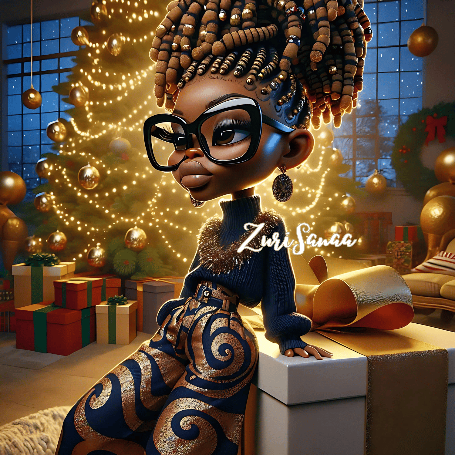 "Holiday Vibes Diva: Festive African American Character PNG Bundle (with Bonus Magic!)"